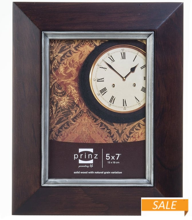 Product Details Prinz® frames & albums DORSET beveled Expresso-Stain 5x7 frame by Prinz® — DORSET has a natural construction and a metallic finish photo border. It's a sophisticated accent for photos of loved ones and cherished times. Natural pine wood with a expresso-brown finish Metallic finish photo border Multi-directional easel Holds a 5"x7" photo Wall hangers for easy wall display From Prinz® maker of fine picture frames for generations. DORSET beveled Expresso-Stain 5x7 frame by Prinz® Model #086981778480 List $26.50 You pay $13.90 In stock Ships next business day [?] Your Price Match is Active Your request for a price of $0.00 for a minimum quantity of has been accepted. You have [time] left to purchase this item for $0.00 instead of $13.90 each. Find a Lower Price? We BEAT All Authorized Retailers [?] FEATURESDisplays:5"x7"Material:Wood (full grain)Finish:SilverOccasion:Home decoratingStyle:Classic, Rustic/Lodge, TraditionalOrientation:BothBrand:Prinz® frames & albumsDisplay Type:Desktop or Wall Approx. Overall Dimensions:8"x10"x1" This item ships in its own box SHARE THIS ITEM Share on Facebook