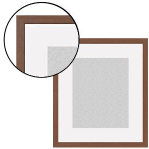Displays an 8"x10" print without its removable mat; displays a 5"x7" print with its 1½" (sides, top & bottom) wide border mat. 1½" moulding width (see Enlarged corner detail)
