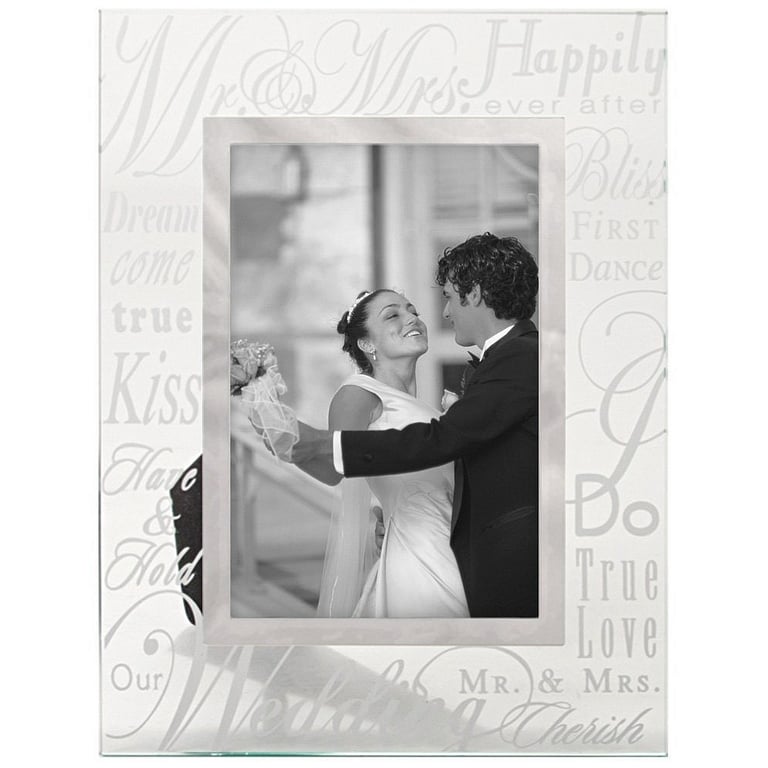 Product Details Malden Designs® Clear Expressions MR & MRS glass 4x6 keepsake — MR. & MRS. Happily ever after - I Do Dream come true True Love - Kiss - Have & Hold Our Wedding - First Dance Celebrate your love with our Clear Expressions MR & MRS picture frame.Bevelled to create a very attractive desk piece.Nice hardboard backing. Glare resistant glass with silver-leaf text.Crafted by Malden®. Clear Expressions MR & MRS glass 4x6 keepsake Model #096287982214 List $18.00 You pay $12.95 In stock Ships next business day [?] Your Price Match is Active Your request for a price of $0.00 for a minimum quantity of has been accepted. You have [time] left to purchase this item for $0.00 instead of $12.95 each. Find a Lower Price? We BEAT All Authorized Retailers [?] FEATURESDisplays:4"x6"Material:GlassFinish:ClearOccasion:Anniversary, Engagement, Romantic, WeddingStyle:Classic, Contemporary, Romantic, Words & whimsy, Sentiments | ready madeOrientation:Vertical OnlyBrand:Malden Designs®Display Type:Desktop Only This item ships in its own box SHARE THIS ITEM Share on Facebook