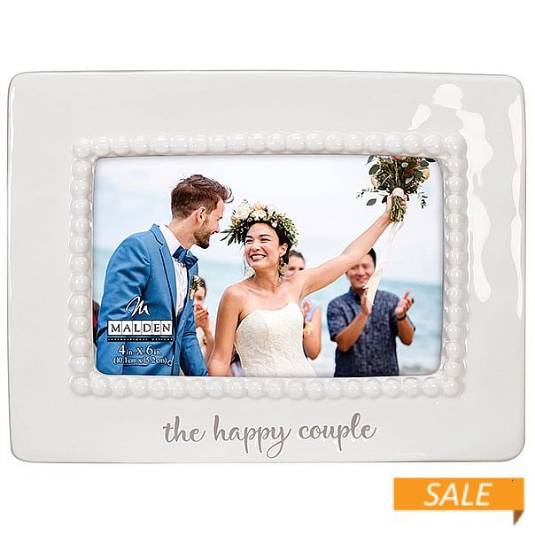 Product Details Malden Designs® THE HAPPY COUPLE by Malden® — Share all the fun of your special day with those you love! Glare resistant glass lens. Easel back for easy desk top display. Produced by Malden®. THE HAPPY COUPLE by Malden® Model #096287162982 List $23.00 You pay $11.90 In stock Can be shipped today [?] Your Price Match is Active Your request for a price of $0.00 for a minimum quantity of has been accepted. You have [time] left to purchase this item for $0.00 instead of $11.90 each. Find a Lower Price? We BEAT All Authorized Retailers [?] FEATURESDisplays:4"x6"Material:CeramicFinish:WhiteOccasion:Romantic, WeddingStyle:Classic, Romantic, Traditional, Words & whimsy, Sentiments | ready madeOrientation:Horizontal OnlyBrand:Malden Designs®Display Type:Desktop Only Approx. Overall Dimensions:9"x7"x1" This item ships in its own box SHARE THIS ITEM Share on Facebook