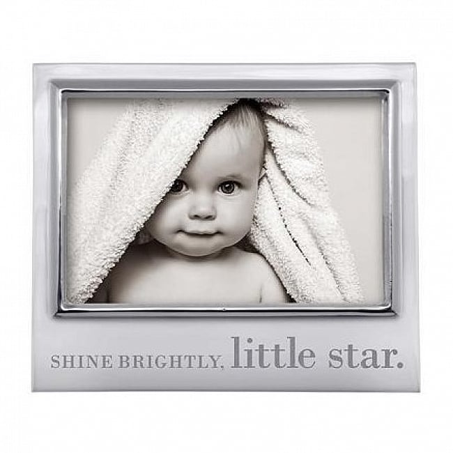 Main view Product Details Mariposa® SHINE BRIGHTLY LITTLE STAR 6x4 SIGNATURE frame by Mariposa® — Celebrate your newborn with the very special SHINE BRIGHTLY, LITTLE STAR. frame. Mariposa fine metallic decor is handcrafted from 100% recycled sandcast aluminum. Items will not tarnish If needed, handwash in warm water with mild soap and towel dry immediately Occasional use of non-abrasive metal polish will revive luster SendAFrame stocks the entire Mariposa® picture frame collection. Shop the entire collection: Mariposa® Design Collection Important Note: Mariposa items are hand engraved. Your piece may differ slightly from the photo. Hint: If you would like this style customized with names, a date . . . use the blank model and have us engrave for you. SHINE BRIGHTLY LITTLE STAR 6x4 SIGNATURE frame by Mariposa® Model #808813172798 List $64.00 You pay $58.95 In stock Can be shipped today [?] Your Price Match is Active Your request for a price of $0.00 for a minimum quantity of has been accepted. You have [time] left to purchase this item for $0.00 instead of $58.95 each. Find a Lower Price? We BEAT All Authorized Retailers [?] FEATURESDisplays:4"x6"Material:AluminumFinish:SilverOccasion:Baby shower, Baptism + Christening, Inspirational, New babyStyle:Contemporary, Eco-Friendly-Recycled, Modern (contemporary) wip, Santa Fe, Shabby Chic, Sophisticated, Words & whimsy, Sentiments | ready made, GlamOrientation:Horizontal OnlyBrand:Mariposa®Display Type:Desktop Only Approx. Overall Dimensions:6 3/4"x5 3/4"x1" This item ships in its own box SHARE THIS ITEM Share on Facebook