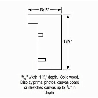 Displays prints, photos, canvas board, or stretched canvas up to ¾" depth