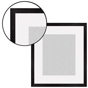Displays an 8"x10" print without its removable mat; displays a 5"x7" print with its 1½" (sides, top & bottom) wide border mat. 3/4" moulding width (see Enlarged corner detail)