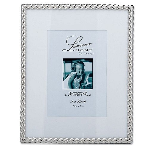 Back to results Scroll Items 6493 of 11045 Family Members 4"x6" - silver ROPE $19.95 5"x7" - silver ROPE $22.95 4"x4" - silver ROPE $17.95 4"x4" - silver ROPE - Round $17.95 4"x6" - (DBL) silver ROPE $32.95 5"x7" - (dbl) (DBL) silver ROPE $40.95 Product Details Lawrence Frames® Silverplate ROPE BORDER matted 8x10/5x7 by Lawrence® — Our brushed silver plate frame is nicely crafted with a beautiful rope trim.Attractively backed for wonderful desk appeal.Dual easel back for portrait or landscape tabletop display. Glare resistant glass lens.By Lawrence Frames, fine frames for generations. Silverplate ROPE BORDER matted 8x10/5x7 by Lawrence® Model #751148066167 List $49.00 You pay $33.95 This item IS in stock and can be expected to ship 02/23/2026 Your Price Match is Active Your request for a price of $0.00 for a minimum quantity of has been accepted. You have [time] left to purchase this item for $0.00 instead of $33.95 each. Find a Lower Price? We BEAT All Authorized Retailers [?] FEATURESDisplays:5"x7"Material:SilverplateFinish:SilverOccasion:Anniversary, Birthday, Good luck, Mother`s Day, Retirement, Romantic, Teacher gifts, Thank-Motivate-Reward, Celebrating Travels, WeddingStyle:Classic, Traditional, RomanticOrientation:BothBrand:Lawrence Frames®Display Type:Desktop or Wall This item ships in its own box SHARE THIS ITEM Share on Facebook