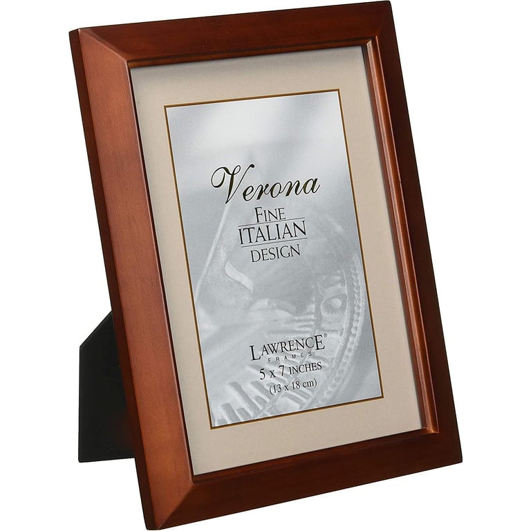 Main view Product Details Lawrence Frames® ESTERO Chestnut wood 5x7 frame — Classic, beautifully crafted hardwood frame in medium chestnut stain.Features glare resistant glass lens and hardboard backing. Convenient dual easel for either portrait or landscape tabletop display. The ESTERO series has a bevelled edge. Crafted by Lawrence Frames®. ESTERO Chestnut wood 5x7 frame Model #48056915 List $19.00 You pay $14.95 In stock Ships next business day [?] Your Price Match is Active Your request for a price of $0.00 for a minimum quantity of has been accepted. You have [time] left to purchase this item for $0.00 instead of $14.95 each. Find a Lower Price? We BEAT All Authorized Retailers [?] FEATURESDisplays:5"x7"Material:Wood (full grain)Finish:BrownOccasion:Corporate gifts, Celebrating TravelsStyle:Classic, Eco-Friendly-RecycledOrientation:BothBrand:Lawrence Frames®Display Type:Desktop or Wall This item ships in its own box SHARE THIS ITEM Share on Facebook