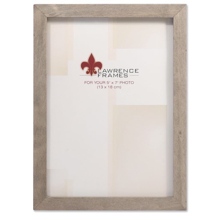 Main view Product Details Lawrence Frames® SQUARE CORNER Gray Stain 5x7 frame by Lawrence Frames® — From Lawrence®, a square corner "flat-top".Frame edge is a very contemporary ½" all-around.Beautifully finished hardwood moulding with tapered seams. Glare resistant glass lens. Attractive black hardboard back. SQUARE CORNER Gray Stain 5x7 frame by Lawrence Frames® Model #48076630 List $19.00 You pay $16.95 In stock Ships next business day [?] Your Price Match is Active Your request for a price of $0.00 for a minimum quantity of has been accepted. You have [time] left to purchase this item for $0.00 instead of $16.95 each. Find a Lower Price? We BEAT All Authorized Retailers [?] FEATURESDisplays:5"x7"Material:Wood (full grain)Finish:Gray/CharcoalOccasion:Business & office, Corporate gifts, Home decoratingStyle:Classic, Architectural, Minimal, ContemporaryOrientation:BothBrand:Lawrence Frames®Display Type:Desktop or Wall Approx. Overall Dimensions:5 7/8"x7 7/8"x3/4" This item ships in its own box SHARE THIS ITEM Share on Facebook