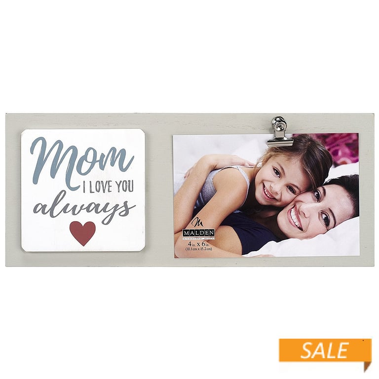 Main view Product Details Malden Designs® MOM I LOVE YOU ALWAYS {Heart} CLIP frame — MOM I LOVE YOU ALWAYS ♥ Add a great photo or keepsake in the clip and you have a gift that will make any Mother beam with joy anytime she sees it !Fashioned in silkscreened wood with raised block attachment. Comfortably displays any photo or note(s) up to 6"x4"Produced by Malden Design®. MOM I LOVE YOU ALWAYS {Heart} CLIP frame Model #096287156004 List $16.00 You pay $7.90 In stock Can be shipped today [?] Your Price Match is Active Your request for a price of $0.00 for a minimum quantity of has been accepted. You have [time] left to purchase this item for $0.00 instead of $7.90 each. Find a Lower Price? We BEAT All Authorized Retailers [?] FEATURESDisplays:4"x6"Material:Wood (mdf/engineered)Finish:Natural, RedOccasion:Birthday, Hanukkah, Mother`s Day, Valentine`s DayStyle:Contemporary, Words & whimsy, Sentiments | ready madeBrand:Malden Designs®Display Type:Desktop or Wall This item ships in its own box SHARE THIS ITEM Share on Facebook