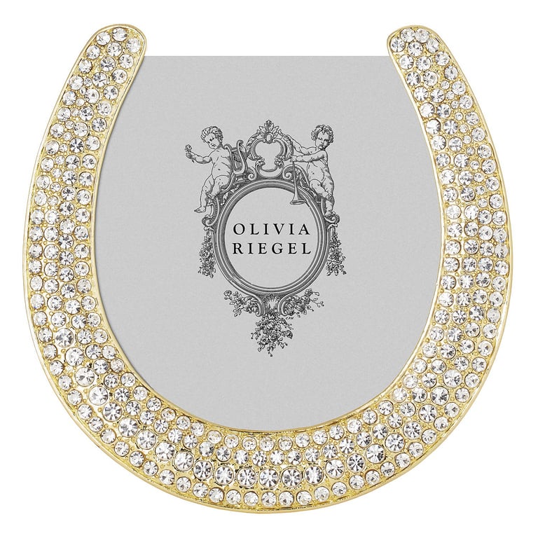 Main view Product Details Olivia Riegel Gold Horseshoe 3.5in Frame by Olivia Riegel® — Spread joy and spark luck with a glamorous gold finished pewter horseshoe. Encrusted with hand-set clear pavé European crystals. Champagne moiré silk back. Tarnish resistant. Signature luxury gift box included. An original design frame from the Olivia Riegel® collection. Gold Horseshoe 3.5in Frame by Olivia Riegel® OLIVIA RIEGEL® HOLIDAY CELEBRATION SAVINGS - Buy More / Save More * Add this item to your cart for the full details of this promotion. Conditions may apply. Model #851090000827 $115.00 This item IS in stock and can be expected to ship 01/15/2026 Your Price Match is Active Your request for a price of $0.00 for a minimum quantity of has been accepted. You have [time] left to purchase this item for $0.00 instead of $115.00 each. Find a Lower Price? We BEAT All Authorized Retailers [?] FEATURESDisplays:3.50"x3.50"Material:Pewter (fine)Finish:GoldOccasion:Anniversary, Congratulations, Engagement, Good luck, Housewarming, Inspirational, Thank-Motivate-Reward, WeddingStyle:Classic, Ornate, TraditionalBrand:Olivia RiegelDisplay Type:Desktop Only Approx. Overall Dimensions:4 1/2"x4 1/2" This item ships in its own box SHARE THIS ITEM Share on Facebook