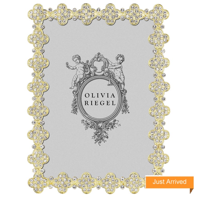 Main view Product Details Olivia Riegel GOLD PAVE CLOVER 5x7 frame by Olivia Riegel® — Inspired by the historic quatrefoil design—a decorative element utilized in architecture and the arts for millennia. Gold finished pewter, adorned with pavé hand-set clear European crystals. Elegant blue hued moiré silk back, with easel designed for vertical or horizontal placement. Tarnish resistant. Signature luxury gift box included. An original design frame from the Olivia Riegel® collection. SendAFrame proudly carries the entire Olivia Riegel® collection for your shopping convenience. GOLD PAVE CLOVER 5x7 frame by Olivia Riegel® OLIVIA RIEGEL® FALL CELEBRATION SAVINGS - Buy More / Save More * Add this item to your cart for the full details of this promotion. Conditions may apply. Model #850054966421 $150.00 This item IS in stock and can be expected to ship 11/25/2025 Your Price Match is Active Your request for a price of $0.00 for a minimum quantity of has been accepted. You have [time] left to purchase this item for $0.00 instead of $150.00 each. Find a Lower Price? We BEAT All Authorized Retailers [?] Approx. Overall Dimensions:6 1/4"x8 1/4" This item ships in its own box SHARE THIS ITEM Share on Facebook