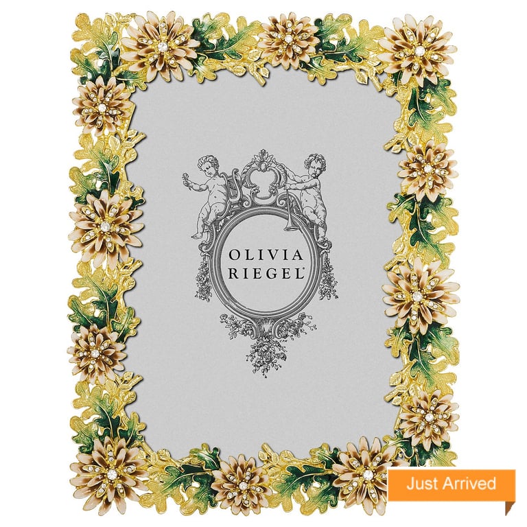 Main view Product Details Olivia Riegel FLORET Gold Vermeil Floral 5x7 frame by Olivia Riegel® — Graceful old world floral design, featuring gold finished pewter blossoms and leaves, intricately hand-enamled in soft and neutral tones. Hand-set clear European crystals. Elegant champagne moiré silk back, with easel for vertical or horizontal placement. Tarnish resistant. Signature luxury gift box included. An original design frame from the Olivia Riegel® collection FLORET Gold Vermeil Floral 5x7 frame by Olivia Riegel® OLIVIA RIEGEL® WINTER Savings- Buy More / Save More * Add this item to your cart for the full details of this promotion. Conditions may apply. Model #850066618080 $225.00 This item IS in stock and can be expected to ship 02/04/2026 Your Price Match is Active Your request for a price of $0.00 for a minimum quantity of has been accepted. You have [time] left to purchase this item for $0.00 instead of $225.00 each. Find a Lower Price? We BEAT All Authorized Retailers [?] FEATURESDisplays:5"x7"Material:Gold vermeil (fine)Finish:Brown(Light)/Tan, Gold, Green, Multi-ColorOccasion:Anniversary, Birthday, Congratulations, Engagement, Graduation, Home decorating, Mother`s Day, Romantic, Thank-Motivate-Reward, Valentine`s Day, Wedding, Hanukkah, ChristmasStyle:Art Nouveau, Contemporary, Country French, Florals, Ornate, RomanticOrientation:BothBrand:Olivia RiegelDisplay Type:Desktop Only Approx. Overall Dimensions:6 1/2"x8 1/2" This item ships in its own box SHARE THIS ITEM Share on Facebook