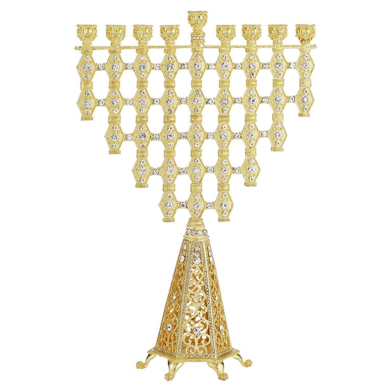 Back to results Scroll Items 2667 of 11106 Main view Product Details Olivia Riegel The GOLD ZIVA CRYSTAL MENORAH by Olivia Riegel® — Magnificent and stately gold finish menorah, with hand-set clear European crystals. Graceful footed base embellished with intricate filigree work. Tarnish resistant. Signature luxury gift box included. An original design from the Olivia Riegel® collection. SendAFrame proudly carries the entire photo frame Olivia Riegel® collection, and related home decor pieces like this Chanukah Menorah. The GOLD ZIVA CRYSTAL MENORAH by Olivia Riegel® OLIVIA RIEGEL® HOLIDAY CELEBRATION SAVINGS - Buy More / Save More * Add this item to your cart for the full details of this promotion. Conditions may apply. Model #850054966360 $525.00 This item IS in stock and can be expected to ship 12/23/2025 Your Price Match is Active Your request for a price of $0.00 for a minimum quantity of has been accepted. You have [time] left to purchase this item for $0.00 instead of $525.00 each. Find a Lower Price? We BEAT All Authorized Retailers [?] FEATURESMaterial:Jewels/crystalFinish:Clear, GoldOccasion:Anniversary, Engagement, Friendship, Home decorating, Housewarming, Wedding, Bar & Bat Mitzvah, Birthday, Hanukkah, Good luck, InspirationalStyle:Antique, Ornate, Traditional, JudaicaBrand:Olivia RiegelDisplay Type:not applicable n/a Approx. Overall Dimensions:8"x12"x4 1/4" This item ships in its own box SHARE THIS ITEM Share on Facebook