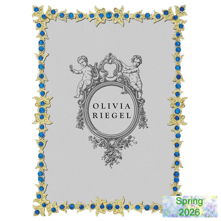Main view Product Details Olivia Riegel GOLD LUXEMBOURG Crystal 5x7 frame w/Capri Blue Stones by Olivia Riegel® — Silver finished cast vermeil picture frame with dozens of hand-set blue European crystals. Elegant navy hued moiré silk back with easel for vertical or horizontal placement. Tarnish resistant. Signature luxury gift box included. An original design frame from the Olivia Riegel® collection. SendAFrame proudly carries the entire Olivia Riegel® collection. GOLD LUXEMBOURG Crystal 5x7 frame w/Capri Blue Stones by Olivia Riegel® OLIVIA RIEGEL® HOLIDAY CELEBRATION SAVINGS - Buy More / Save More * Add this item to your cart for the full details of this promotion. Conditions may apply. Model #850066618516 $125.00 This item IS in stock and can be expected to ship 01/15/2026 Your Price Match is Active Your request for a price of $0.00 for a minimum quantity of has been accepted. You have [time] left to purchase this item for $0.00 instead of $125.00 each. Find a Lower Price? We BEAT All Authorized Retailers [?] FEATURESDisplays:5"x7"Material:Jewels/crystalFinish:Blue, GoldOccasion:Anniversary, Birthday, Congratulations, Mother`s Day, Romantic, WeddingStyle:Classic, Romantic, Ornate, TraditionalOrientation:BothBrand:Olivia RiegelDisplay Type:Desktop Only Approx. Overall Dimensions:6"x8" This item ships in its own box SHARE THIS ITEM Share on Facebook