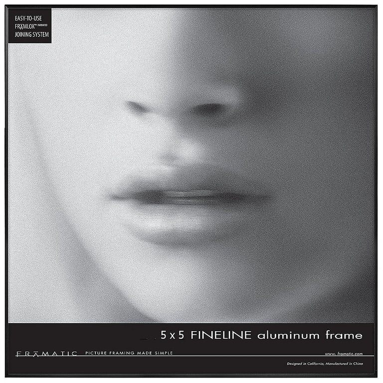 Main view Reverse (sample) Framelok System Product Details Framatic FINELINE Black Aluminum 5x5 by Framatic® — Use the Framatics® FINELINE series for flattering, minimal, contemporary presentation of your art or prints. Thin aluminum frame is an elegant way to display photos and artwork Black finish Patented 'FRAMLOK' assembly system allows you to easily insert photo or artwork Polished edge glass Easel back for tabletop display Moulding edge is 1/8" wide all around Includes an adjustable hanger Crafted by FRAMATIC®. FINELINE Black Aluminum 5x5 by Framatic® Model #42009809 List $22.50 You pay $18.95 In stock Ships next business day [?] Your Price Match is Active Your request for a price of $0.00 for a minimum quantity of has been accepted. You have [time] left to purchase this item for $0.00 instead of $18.95 each. Find a Lower Price? We BEAT All Authorized Retailers [?] FEATURESDisplays:5"x5"Material:AluminumFinish:BlackOccasion:Business & office, Celebrating Travels, Corporate gifts, Home decorating, Thank-Motivate-RewardStyle:Architectural, Contemporary, MinimalBrand:FramaticDisplay Type:Desktop or Wall Approx. Overall Dimensions:5 1/8"x5 1/8"x7/8" This item ships in its own box SHARE THIS ITEM Share on Facebook