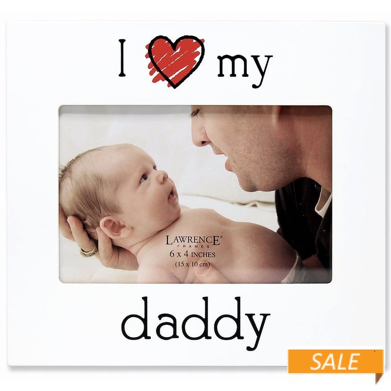 Main view Angled Reverse Product Details Lawrence Frames® I {HEART} MY DADDY 6x4 frame Lawrence Frames® — A very pretty, inexpensive salute to a DAD from the Sentiments Collection. I {HEART} MY DADDY Add a great photo and you have a gift that will make any Dad smile!Beautifully personalized. Holds a 6"x4" photo. Glass lens. Easel back for tabletop display.Produced by Lawrence Frames®. I {HEART} MY DADDY 6x4 frame Lawrence Frames® Model #751148068512 List $19.00 You pay $9.90 In stock Can be shipped today [?] Your Price Match is Active Your request for a price of $0.00 for a minimum quantity of has been accepted. You have [time] left to purchase this item for $0.00 instead of $9.90 each. Find a Lower Price? We BEAT All Authorized Retailers [?] FEATURESDisplays:4"x6"Material:Wood (mdf/engineered)Finish:Red, WhiteOccasion:Valentine`s Day, Father`s DayStyle:Words & whimsy, Sentiments | ready madeOrientation:Horizontal OnlyBrand:Lawrence Frames®Display Type:Desktop or Wall Approx. Overall Dimensions:6 13/16"x7 13/16"x5/8" This item ships in its own box SHARE THIS ITEM Share on Facebook