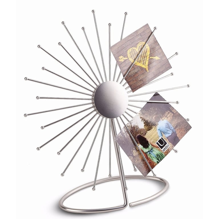 Product Details Umbra® Design SUNNY DESK NICKEL photo and memo holder by Umbra® — Metal wire desktop medallion holds memos and photos. Designed by Alan Wisniewski; Crafted by Umbra® for SendAFrame. Available in a variety of colors: see SIMILAR STYLES at bottom of page to add to your collection. To view the entire collection, click: Umbra® designs The New Umbra® SUNNY desk sculptures - Watch this: FeaturesAvailable in a variety of colors: see SIMILAR STYLES at bottom of page to add to your collection. SUNNY DESK NICKEL photo and memo holder by Umbra® Model #95424509 List $20.00 You pay $17.95 In stock Can be shipped today [?] Your Price Match is Active Your request for a price of $0.00 for a minimum quantity of has been accepted. You have [time] left to purchase this item for $0.00 instead of $17.95 each. Find a Lower Price? We BEAT All Authorized Retailers [?] FEATURESMaterial:Metallic (all)Finish:SilverOccasion:Baby shower, Birthday, Business & office, Christmas, Congratulations, Corporate gifts, Group Events + Parties, Get well, Good luck, Home decorating, Housewarming, Inspirational, Teacher gifts, Team & coach gifts, Thank-Motivate-Reward, Celebrating Travels, Back to SchoolStyle:College Dorm, Contemporary, Sports & leisureBrand:Umbra® DesignDisplay Type:Desktop Only Approx. Overall Dimensions:8 3/4"x9 1/2"x3" This item ships in its own box SHARE THIS ITEM Share on Facebook