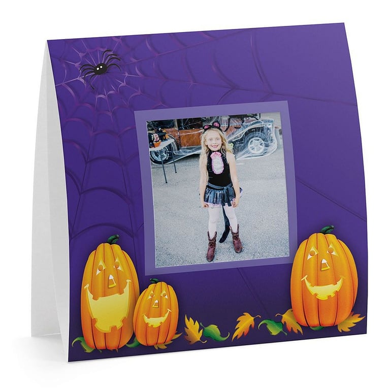 Main view 110 Promo shot Product Details Collectors Gallery INSTAX SQUARE™ Size HALLOWEEN PUMPKINS Event Photo Folders — Happy Halloween! Spiders and pumpkins adorn our paper photo frame to hold Instax Square instant prints. Picture opening measures 2 1/4" x 2 1/4" square Overall size measures 5" x 5" square Lightweight smooth finish card stock paper Holds FUJI 200, 210 and 300 camera prints Three-panel construction folds to create easel frame Shipped flat, not folded Envelopes available separately Fast personalizing available A sensational party give-away. Individually priced; sold in 10s. Minimum 100. INSTAX SQUARE™ Size HALLOWEEN PUMPKINS Event Photo Folders Model #52138081 List $7.50 You pay $6.90 ( set of 10 / $0.69 ea ) This item can be expected to ship by 11/24/2025. Order now by clicking ADD TO CART (below); you are only charged when we actually ship. Or, Click here to be automatically notified when it comes back in stock. Your Price Match is Active Your request for a price of $0.00 for a minimum quantity of has been accepted. You have [time] left to purchase this item for $0.00 instead of $0.69 each. Find a Lower Price? We BEAT All Authorized Retailers [?] FEATURESDisplays:2.25"x2.25"Material:Card-stockFinish:Orange, PurpleOccasion:HalloweenStyle:Travel Ready, Eco-Friendly-RecycledDisplay Type:not applicable n/a Approx. Overall Dimensions:5"x5" SHARE THIS ITEM Share on Facebook