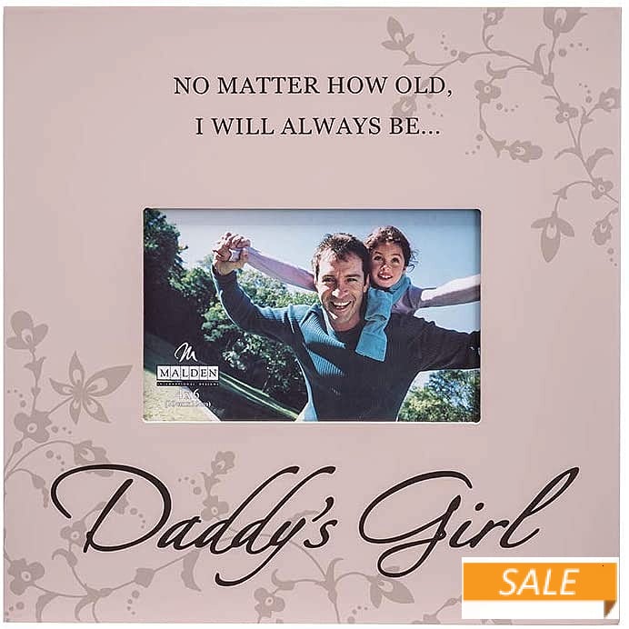 Main view Product Details Malden Designs® DADDY'S GIRL (Lucky Dad!) 6x4 frame — NO MATTER HOW OLD, I WILL ALWAYS BE ... Daddy's Girl Nicely backed with glare resistant glass lens. Stand-up easel for tabletop display or use the included wall mounts for easy hanging.Quality crafted by Malden®. To shop the collection, click Malden Design® DADDY'S GIRL (Lucky Dad!) 6x4 frame Malden Designs® FALL CELEBRATION Savings - ends SundayBuy More / Save More * Add this item to your cart for the full details of this promotion. Conditions may apply. Model #096287984225 List $14.50 You pay $8.90 In stock Ships next business day [?] Your Price Match is Active Your request for a price of $0.00 for a minimum quantity of has been accepted. You have [time] left to purchase this item for $0.00 instead of $8.90 each. Find a Lower Price? We BEAT All Authorized Retailers [?] Approx. Overall Dimensions:10 1/2"x10 1/2"x1" This item ships in its own box SHARE THIS ITEM Share on Facebook