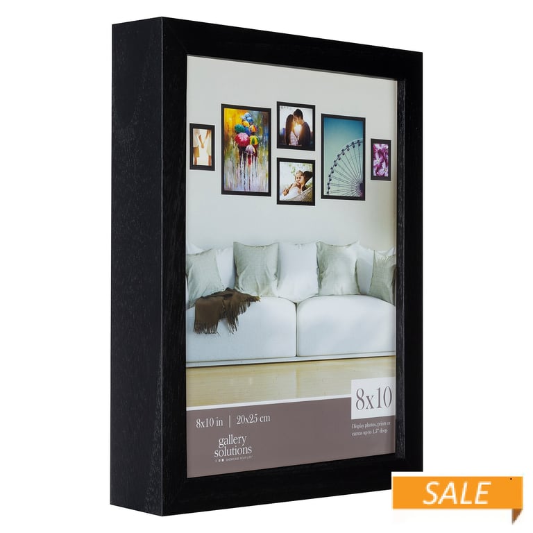 Back to results Scroll Items 10084 of 11053 Family Members 5"x7" - GALLERY Black $10.90 12"x12" - GALLERY Black $18.90 14"x18" - GALLERY Black $38.95 16"x20" - GALLERY Black $49.95 9"x12" - GALLERY Black $14.90 20"x24" - GALLERY Black $47.90 Main view Product Details Gallery Solutions™ BLACK GALLERY 8x10 frame by Gallery Solutions® — Black, flat-top - and solid wood frame. Crafted by Gallery Solutions®. Gallery Solutions® is part of the Nielsen-Bainbridge family of frame companies. SendAFrame stocks the complete line for your decorating convenience. Click here to view more terrific Gallery Solutions basics to start or add to your gallery. BLACK GALLERY 8x10 frame by Gallery Solutions® Model #038555560373 List $22.50 You pay $11.90 In stock Ships next business day [?] Your Price Match is Active Your request for a price of $0.00 for a minimum quantity of has been accepted. You have [time] left to purchase this item for $0.00 instead of $11.90 each. Find a Lower Price? We BEAT All Authorized Retailers [?] FEATURESDisplays:8"x10"Material:Wood (full grain)Finish:BlackOccasion:Business & office, Home decoratingStyle:Classic, Minimal, TraditionalBrand:Gallery Solutions™Display Type:Desktop or Wall Approx. Overall Dimensions:9 5/16"x11 5/16"x1 13/16" This item ships in its own box SHARE THIS ITEM Share on Facebook