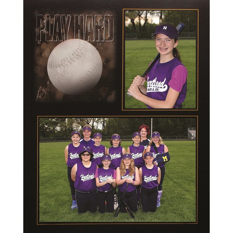 Main view Product Details TAP™ PLAY HARD SOFTBALL Player/Team 7x5/3½x5 MEMORY MATES cardstock double photo frame (sold in 10's) — The TAP Play Hard Memory Mate, is a themed traditional style memory mate. This memory mate is designed to hold an individual portrait and a team picture. Constructed with a high-quality printed, coated board Displays 2 prints: a horizontal 7"x5" group photo and a vertical 3½"x5" individual print Large sports motif to the left of the individual portrait Slip-in side loading mount for easy assembly Pull out stand on back of mount Autograph section on back Foil personalizing available (add to CART for options) Individually priced; sold in 10's (to save you shipping $) The TAP Play Hard Memory Mate series is available with specific sports. There are also coordinating Play Hard Sports Folders to complete your photo packaging. By TAP Packaging®. PLAY HARD SOFTBALL Player/Team 7x5/3½x5 MEMORY MATES cardstock double photo frame (sold in 10's) Model #69081868 List $20.00 You pay $16.90 ( set of 10 / $1.69 ea ) This item IS in stock and can be expected to ship 11/19/2025 Your Price Match is Active Your request for a price of $0.00 for a minimum quantity of has been accepted. You have [time] left to purchase this item for $0.00 instead of $1.69 each. Find a Lower Price? We BEAT All Authorized Retailers [?] FEATURESDisplays:5"x7"Material:Card-stockFinish:BlackOccasion:Group Events + Parties, Team & coach giftsStyle:Sports & leisure, Teens & tweens, , ContemporaryBrand:TAP™Display Type:not applicable n/a Approx. Overall Dimensions:8"x10" SHARE THIS ITEM Share on Facebook