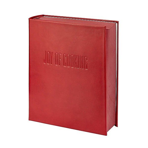 Main view Product Details Graphic Image® (THE) JOY OF COOKING Luxe RED Leather by Graphic Image™ — Joy of Cooking, often known as "The Joy of Cooking", is one of the United States' most-published and beloved cookbooks. It has been in print continuously since 1936 and has sold more than 18 million copies. This leather bound Joy of Cooking is the all-purpose cookbook. Embossed leather hard-cover and painted edges. Size: 6¾" W x 2½" D x 9½" H White paper with painted edges Smyth-sewn for strength and longevity Personalization available Made in the U.S.A. Makes a great gift for the ones who love to cook and the ones learning to cook! Graphic Image™ hand-crafts genuine leather books and gifts that have set the modern day standard for quality and design. (THE) JOY OF COOKING Luxe RED Leather by Graphic Image™ Model #611959761487 $150.00 1 available to ship, more on the way. This item IS in stock and can be expected to ship 01/22/2026 In stock Your Price Match is Active Your request for a price of $0.00 for a minimum quantity of has been accepted. You have [time] left to purchase this item for $0.00 instead of $150.00 each. Find a Lower Price? We BEAT All Authorized Retailers [?] FEATURESMaterial:Leather (fine)Finish:RedOccasion:Back to School, Birthday, Corporate gifts, Friendship, Good luck, Housewarming, Inspirational, Mother`s Day, Retirement, Thank-Motivate-Reward, Valentine`s Day, Weekend Host GiftsStyle:Classic, Contemporary, Sophisticated, TraditionalBrand:Graphic Image®Display Type:not applicable n/a Approx. Overall Dimensions:6 3/4"x9 1/2"x2 1/2" This item ships in its own box SHARE THIS ITEM Share on Facebook
