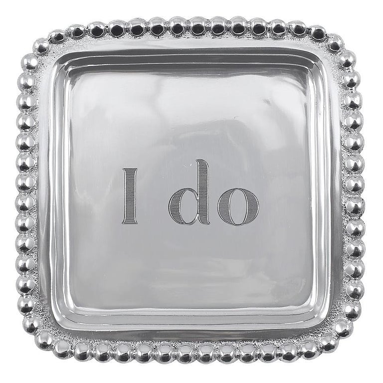 Main view Product Details Mariposa® I DO BEADED SQUARE 4x4 TRAY by Mariposa® — Use this beaded edge tray to stow rings or "sticky" notes. Other catchalls cannot compare to the understated elegance of this small tray. Engraved with I DO Material: Recycled Sandcast Aluminum Dimensions: 4¼in L x 4¼in W Designer: Michael Updike Important Note: Mariposa items are hand engraved. Your piece may differ slightly from the photo. SendAFrame stocks the entire Mariposa® picture frame line - and related Brand and Design styled items like this. Shop the entire collection: Mariposa® Design Collection I DO BEADED SQUARE 4x4 TRAY by Mariposa® Mariposa® HOLIDAY CELEBRATION Savings - Buy More / Save More * Add this item to your cart for the full details of this promotion. Conditions may apply. Model #808813137520 List $38.00 You pay $34.95 In stock Ships next business day [?] Your Price Match is Active Your request for a price of $0.00 for a minimum quantity of has been accepted. You have [time] left to purchase this item for $0.00 instead of $34.95 each. Find a Lower Price? We BEAT All Authorized Retailers [?] FEATURESMaterial:AluminumFinish:SilverOccasion:Engagement, Romantic, WeddingStyle:Contemporary, Eco-Friendly-Recycled, Modern, Romantic, Santa Fe, Shabby Chic, Sports & leisureBrand:Mariposa®Display Type:not applicable n/a Approx. Overall Dimensions:4 1/4"x4 1/4" This item ships in its own box SHARE THIS ITEM Share on Facebook