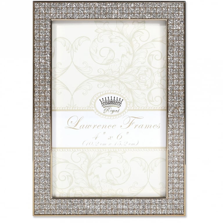 Main view Product Details Lawrence Frames® WHITE JEWELS GOLD/Crystal frame — Nicely crafted, this bling designed frame is perfect for a fabulous glamour shot. 3 rows of square-cut crystals adorn the entire border of this fun gold-tone frame. Glare resistant glass lens. Black velvet easel back for tabletop display. Produced by Lawrence®. WHITE JEWELS GOLD/Crystal frame Model #751148073905 List $29.00 You pay $20.95 In stock Can be shipped today [?] Your Price Match is Active Your request for a price of $0.00 for a minimum quantity of has been accepted. You have [time] left to purchase this item for $0.00 instead of $20.95 each. Find a Lower Price? We BEAT All Authorized Retailers [?] FEATURESDisplays:4"x6"Material:Jewels/crystalFinish:Gold, ClearOccasion:Anniversary, Engagement, Friendship, Romantic, WeddingStyle:Classic, Romantic, Sophisticated, Unique | LimitedOrientation:BothBrand:Lawrence Frames®Display Type:Tabletop (or wall w/optional hanger - available separately) Approx. Overall Dimensions:4 3/4"x6 3/4"x11/16" This item ships in its own box SHARE THIS ITEM Share on Facebook