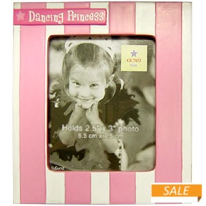 Main view Detail Product Details GUND® DANCING PRINCESS 2.5x3 frame by Gund — Cute pink and white stripes decorate the border making this a very sweet frame.Any little girl will look precious in this frame!Easel back for portrait tabletop display. Glare resistant glass lens.Another very cute special frame from Gund Gifts®. DANCING PRINCESS 2.5x3 frame by Gund Model #028399003310 List $9.50 You pay $5.90 In stock Can be shipped today [?] Your Price Match is Active Your request for a price of $0.00 for a minimum quantity of has been accepted. You have [time] left to purchase this item for $0.00 instead of $5.90 each. Find a Lower Price? We BEAT All Authorized Retailers [?] Approx. Overall Dimensions:3 1/2"x4" This item ships in its own box SHARE THIS ITEM Share on Facebook